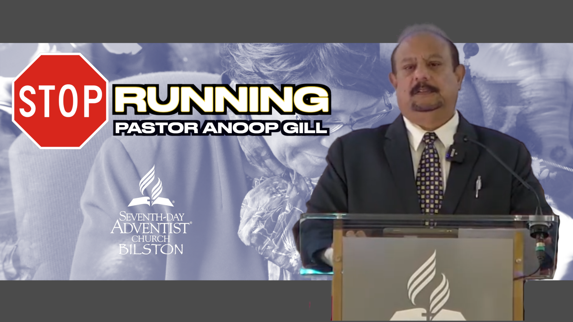 This Sabbath the speaker is Pastor Anoop Gill. The sermon title is "Stop Running." Scripture reading: